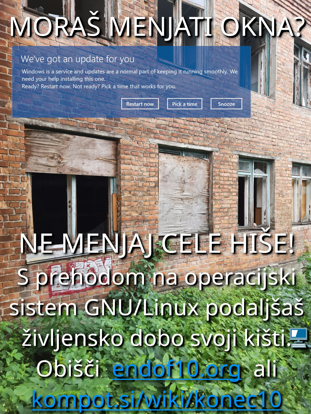 @filip, to je čisto dovolj, kar rabim za v uvod. Super, da pride Nejc! On 10/6/25 11:56, Filip Muki Dobranić wrote:Hoj! Se opravičujem, čisto preveč dela imam te dni, ne morem zares prebrati izjave pa dati uporabnega feedbacka, ampak potrjujem, da pride Nejc. Planirali smo, da se njegova izjava dotika državnih licenc in šparanja denarja, ampak komot jo danes še malo zavrtimo v katero drugo smer. Tako da kar s predlogi in željami na plano. \m/ On Mon, Oct 6, 2025 at 10:27 AM Lio via Konec10 <konec10@kompot.si> wrote: @Matjaž - Hvala, bom dodal v tekst. @Kristjan - to je bil lapsus, da mi je ušla, sem popravil 1. in 2. On 10/6/25 09:52, Matjaž Ugovšek wrote:Jaz bom govoril o uporabniški izkušnji, raznolikosti distribucij, poslovenjenosti, podpori win aplikacijam in že pregovorni varnosti pred zlobno kodo. Naječ pozornosti bom posvetil prvemu, saj se temu tudi najbolj posvečamo pri našem delu. Izpostavil bom izkušnje, kii smo jih pridobili z nudenjem računalnikov starejšim, ki potrebujejo intuitiven in znan uporabniški vmesnik ter kratka in jasna navodila za njegovo uporabo. Ob tem bom vzel za primer slabe prakse pripravo tistih 13.000 laptopov, kjer je mdp zapravil dobro priložnost za res dober in odmeven projekt. Lp, Matjaž Ugovšek, Društvo Duh časa (poslano s telefona) V pon., 6. okt. 2025 00:47 je oseba Lio via Konec10 <konec10@kompot.si> napisala: Zdravo, moj predlog za uvodno izjavo je na voljo v temle etherpadu: https://pisi.kompot.si/p/konec10-vabilo Malce se lovim glede uporabe izraza GNU/Linux (glede na to, da vse več projektov opušča GNU pri poimenovanju, sicer nisem čisto prepričan, če se s tem strinjam, ampak bom pragmatičen). Časovnica: Uvodno izjavo bi, če se vsi strinjate v torek zjutraj ponovno poslal na adremo novinarjem (kot opomnik na novinarsko konferenco). Do jutri do 16h bi rad prejel vaše komentarje in pripombe, da jih vključim v besedilo in po potrebi popravim. Lahko noč, Lio Novelli On 10/5/25 23:49, Lio via Konec10 wrote: > Meni se zdi tako kot si zastavil ubistvu še bolje. Lahko narediš še > nek hiter pregled, koliko časa je Microsoft nudil podporo za posamezne > različice svojih operacijskih sistemov (ne pozabit tudi na TPM čip, ki > je nujen za Win11, katera verzija?). > > Za Matjaža pa sem seveda pozabil tudi navest, da bo verjetno povedal > koliko (starih) računalnikov je Duh časa ohranil pri življenju, kar je > osnovna poanta cele kampanje Konec10. > > Je pa vredno razmišlati tudi v smeri, da Linux ni samo operacijski > sistem za ohranjanje starih računalnikov, ampak super deluje tudi na > novih mašinah in je primeren za vse vrste uporabe (od razvoja > programske opreme, urejanja multimedijskih vsebin do igranja > računalniških igric). Bom to jaz dodal v mojo uvodno izjavo. > > LP > > Lio > > On 10/5/25 23:33, testman--- via Konec10 wrote: >> Živjo. >> >> Jaz sem mojo predstavitev zastavil malo drugače. In sicer, da bi >> predstavil pregled trenutnega stanja, predvsem v Sloveniji. >> Torej nekaj besed o Windows 10, kakšne so sistemske zahteve zanj in >> koliko računalnikov po Sloveniji poganja, pol pa malo o Windows 11 >> zahtevah, razlogi zakaj ljudje niso mogli ali želeli posodobit, in pa >> pol uvod v to kako kul je Linux. >> >> Sem sicer mislil malo povedat tudi o stanju drugje po Evropi, samo >> ja, bom to razširil v bolj podrobno analizo in jo predstavil pol za >> Matjažem, ko bo publika imela že malo boljši občutek o tem, kako >> zgleda in deluje Linux. >> >> Tako da povzetek moje predstavitve o trenutnem stanju računalnikov po >> Sloveniji bi bil to: >> >> Okna 10 trenutno poganjajo več kot polovico računalnikov v Sloveniji. >> Po koncu podpore bo uporaba teh računalnikov z vsakim dnem >> predstavljala večje tveganje za njihove uporabnike. >> Posodobitev na Okna 11 v veliko primerih ni možna, kljub zmogljivi >> strojni opremi. >> Uporabniki bodo postavljeni pred dilemo, in sicer med uporabo >> nezavarovanega sistema ali pa predčasnim nakupom novega računalnika. >> Obstaja pa način, s katerim se da tej dilemi izogniti. To je >> namestitev sistema Linux. >> >> (lahko preurediš in zamenjaš besede tako, da bo bolj primerno za >> novinarje in javnost) >> >> In pa jaz tudi nameravam prinest moj računalnik, ki ne ustreza Win11 >> pogojem ampak ga Linux čisto lepo poganja. >> >> lp >> Leon >> >> 2025-10-05 20:25, je Lio via Konec10 napisal >>> Pozdravljeni, >>> >>> Jaz sem prejšnji teden poslal vabilo na novinarsko konferenco na >>> adremo (mislim, da sem zajel večino slovenskih medijev). >>> >>> Sedaj se trudim s pripravo uvodnega teksta, ki bi ga lahko natisnili >>> tudi kot izroček za novinarje, in bi mi zelo koristilo, če bi lahko >>> vključil kratke povzetke predstavitev drugih govorcev. Zato bi >>> prosil, če mi lahko (čimprej) pošljete povzetke, oziroma me >>> popravite, če sem narobe razumel: >>> >>> - Matjaž Ugovšek - Duh časa; razširjanje Linux operacijskih sistemov >>> v Sloveniji, prednosti Linuxa in pomoč in podpora uporabnikom, >>> (lahko tudi hiter prikaz delovanja na razstavljenih računalnikih) >>> >>> - Leon Anželj - Kiberpipa, Kompot, Na prostem; Uporaba Linuxa v >>> javnih institucijah po EU, pregled domačih in svetovnih aktivnosti v >>> okviru kampanje Konec10 >>> >>> - Nejc Horvat - Danes je nov dan, še ni potrjen in ne vem, kaj bo >>> predstavil. >>> >>> Z Jurijem sva se pogovarjala, da bi lahko predstavil gibanje >>> NoAzureForApartheid in proteste proti Microsoftu v ZDA, saj podjetje >>> sodeluje z izraelsko vojsko pri masovnem nadzoru nad palestinci. >>> >>> >>> Predlagam, da se jutri, 6. 10. 2025, še enkrat dobimo na jitsi >>> klicu, zopet ob 15h in se še enkrat uskladimo glede vsebine. >>> Napoved: >>> https://dogodki.kompot.si/events/0399f9d1-17e9-48a7-9872-5028f446e26c >>> >>> >>> V torek, bi predlagal, da se dobimo ov 11h v knjižnici Otona Župančiča. >>> >>> >>> Lep pozdrav, >>> >>> Lio Novelli >>> >>> >>> >>> __________________